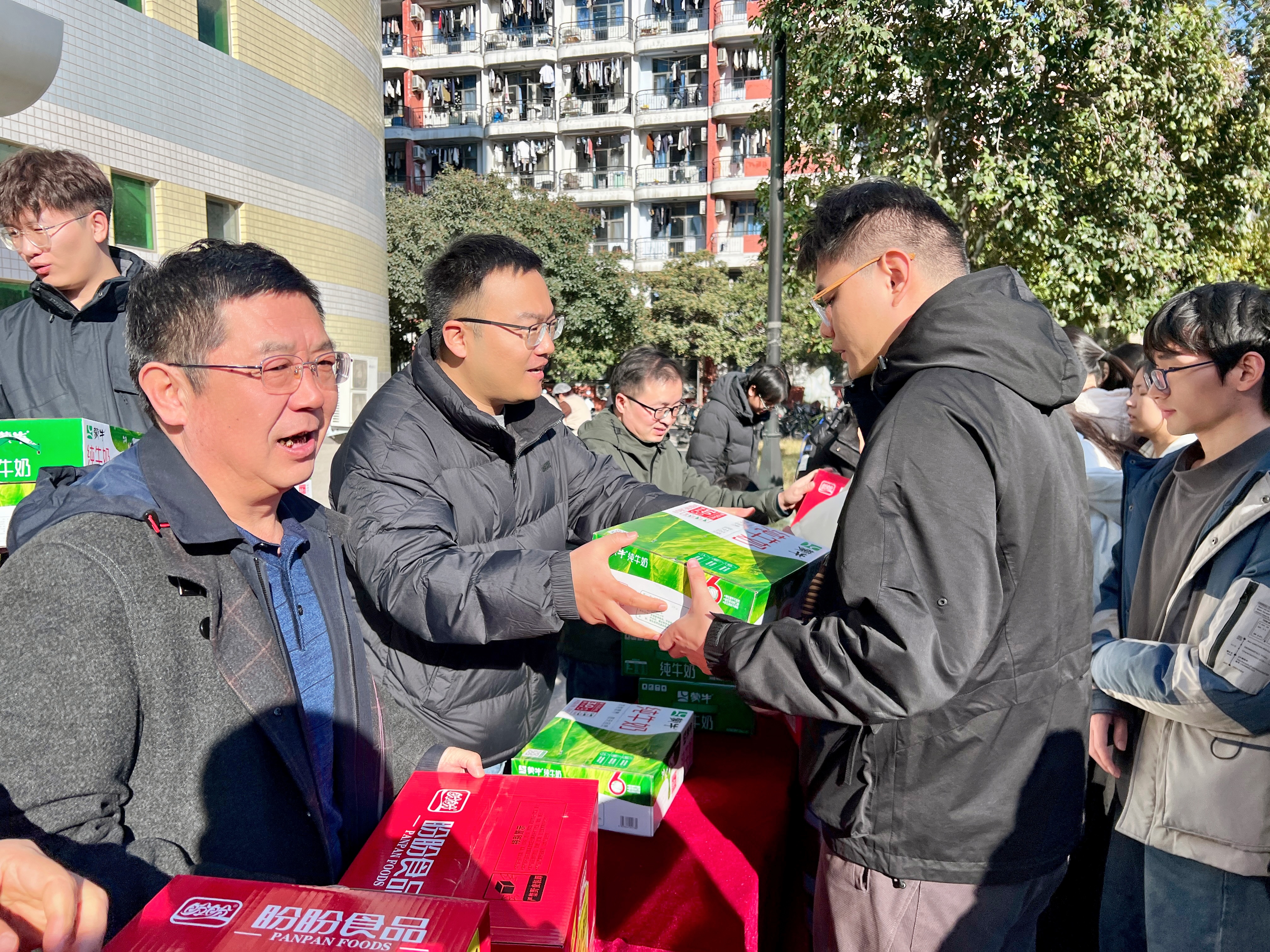 随后学院领导老师为考研学子发放了精心准备的暖心物资,饱含了学院对考研学子的深切关怀和温情陪伴,同时,送上美好祝福,鼓励同学们保持积极向上的心态,注意劳逸结合,发挥自己的真实水平,取得优异成绩。同学们接过这份来自学院的温暖,脸上洋溢着幸福的笑容,纷纷表示将以更加饱满的热情投入到接下来的备考中。