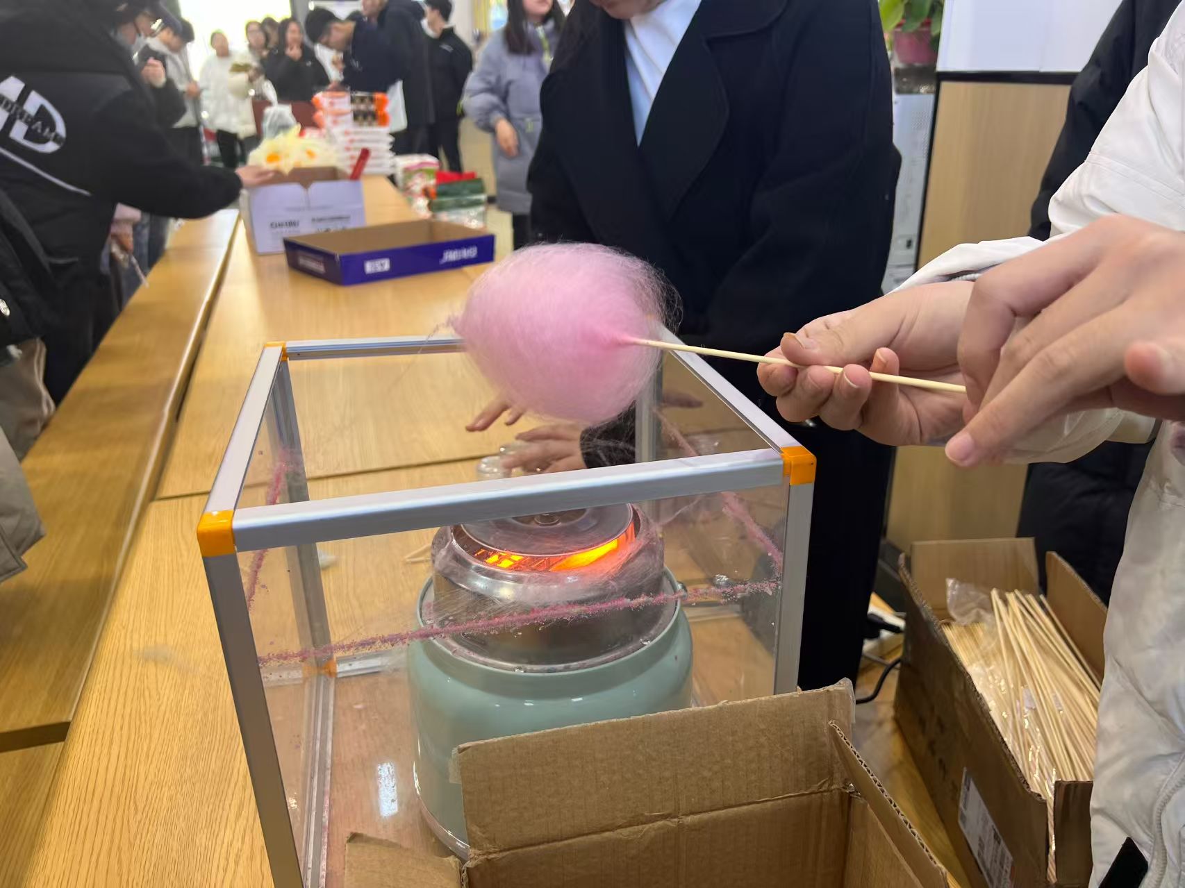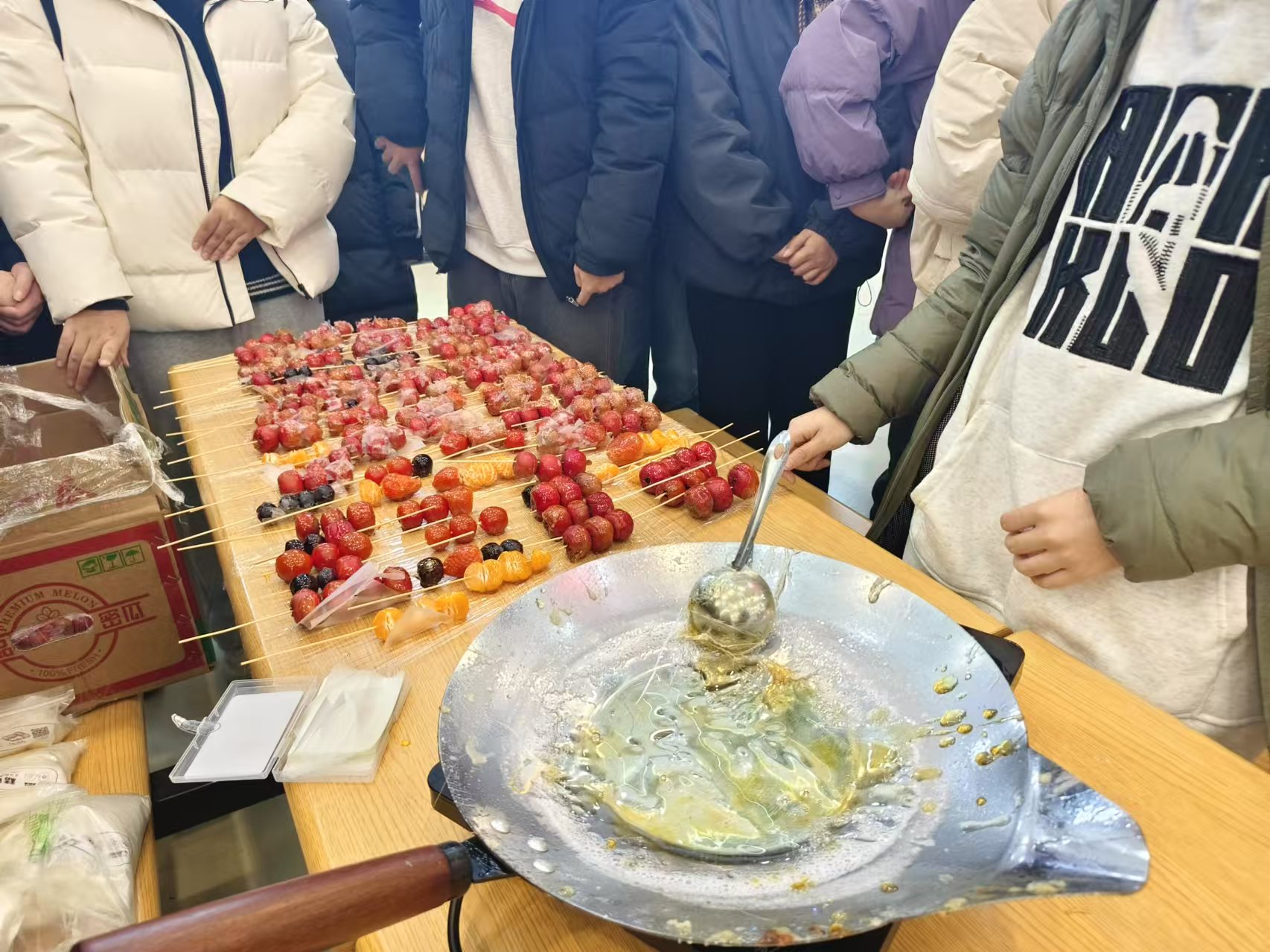 大赛前,参赛选手们在食品工艺实验室大展身手。在比赛的过程中,选手们表现得井然有序,他们以集体的智慧为指引,创作出了五花八门、创意无限的作品。他们将饺子视作画布,以温馨的情感作为颜料,描绘出自己的青春风采。各参赛队伍将面粉变幻出各种形态,利用五味俱全的馅料来表达他们内心的期盼,力图让每一件作品都成为一首青春的赞歌。参赛者们用他们饱满的热情展现出青春的风采,塑造了“祥瑞”、“和和美美”、“福泽”、“‘饺’踏实地”等主题,别具匠心的作品又体现了同学们的团结一致凝聚力。色彩和谐的创作,仿佛让人置身于一场视觉的盛宴。此外,学子们还巧妙地制作了美味的糖葫芦和棉花糖,让大家在寒冷的冬日也能体会到温暖与甜蜜。