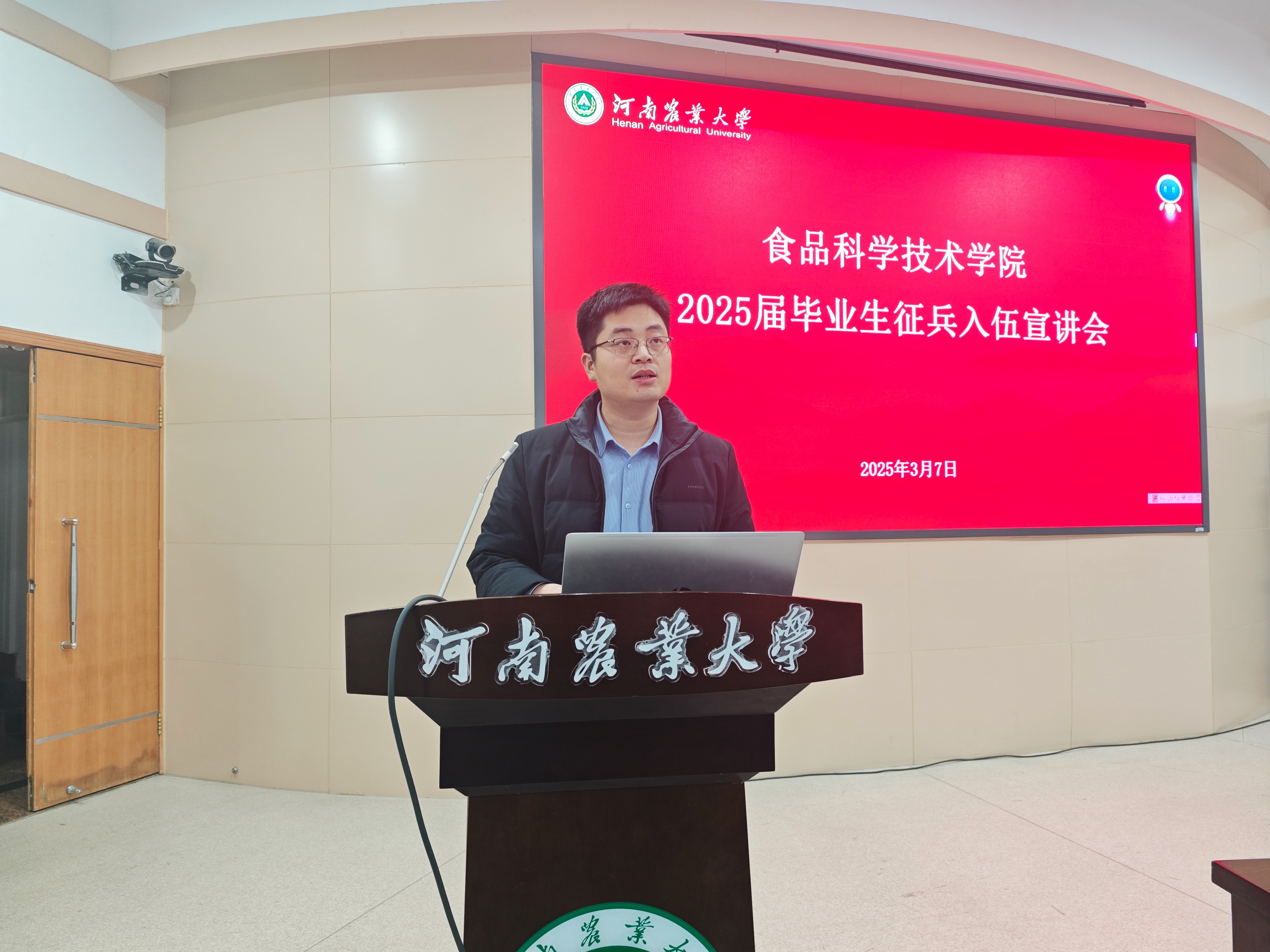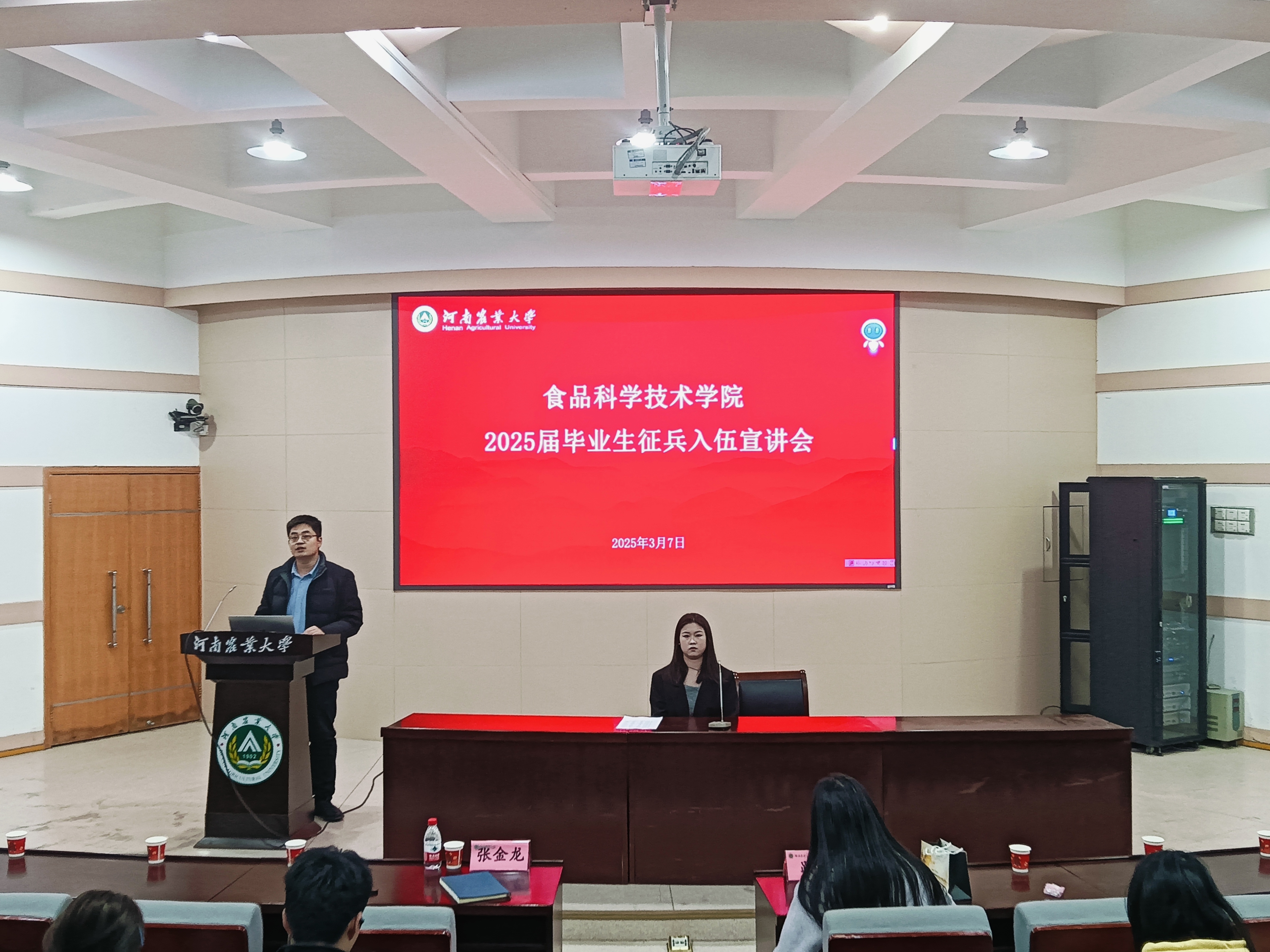 于文化路校区300人报告厅举办毕业生征兵入伍宣讲会,25届毕业生代表参加,此次会议由院团委副书记张金龙主讲。