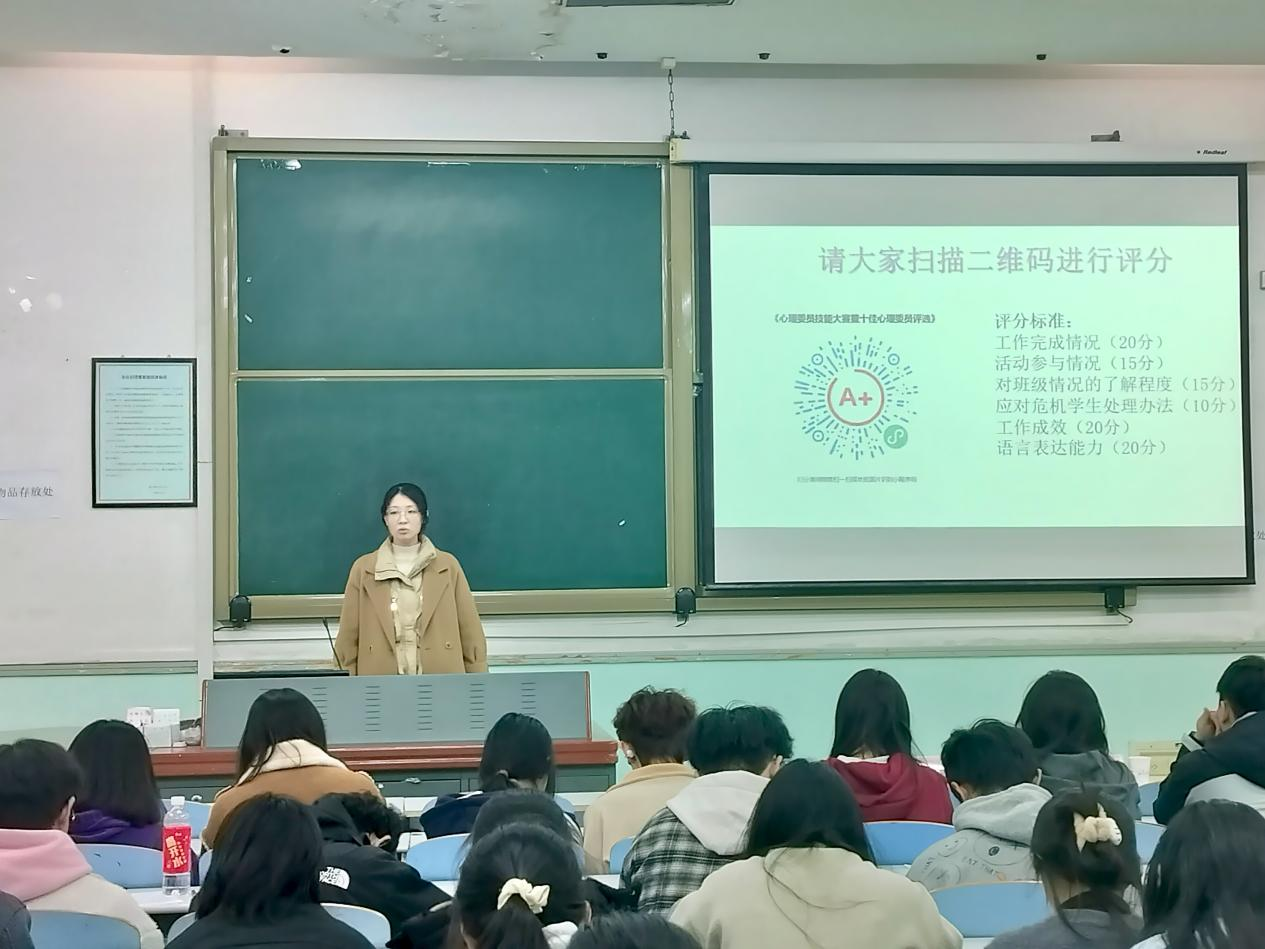 于文化路校区工程楼206室召开心理委员技能大赛暨十佳心理委员评选活动,院团委书记路平、辅导员丁明明、王小花出席此次活动,23、24级部分同学参加。