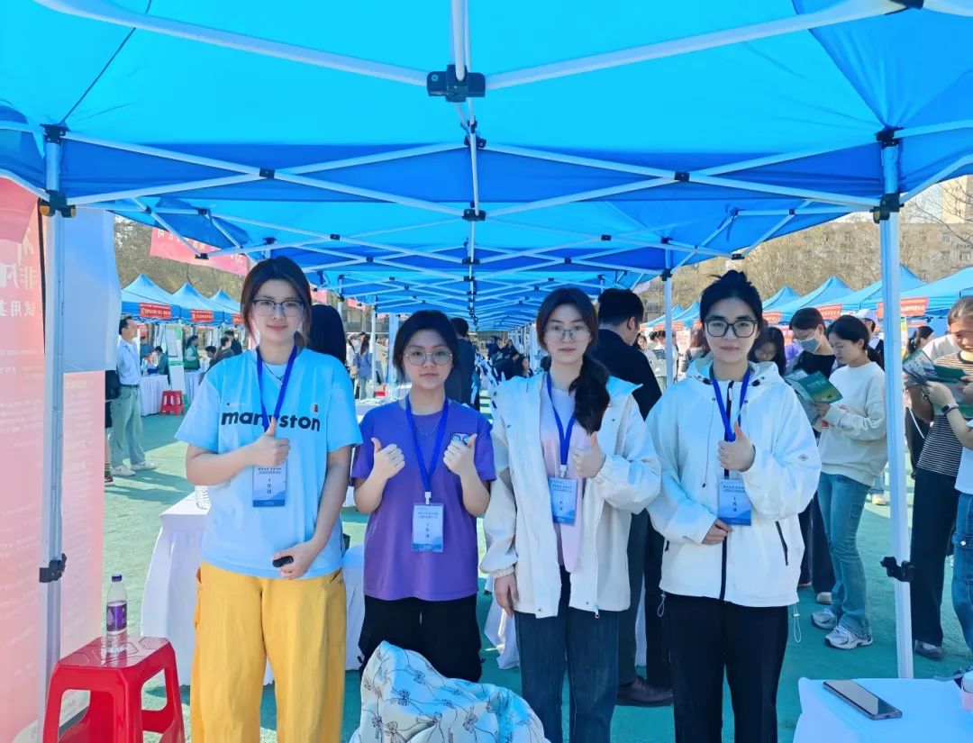 本次双选会现场还活跃着一支由30余名学院同学组成的志愿者团队,他们在前期筹备阶段便协助完成企业接待、展位布置等准备工作,凭借着热情的服务和专业的素养成为双选会上一道亮丽的风景线。