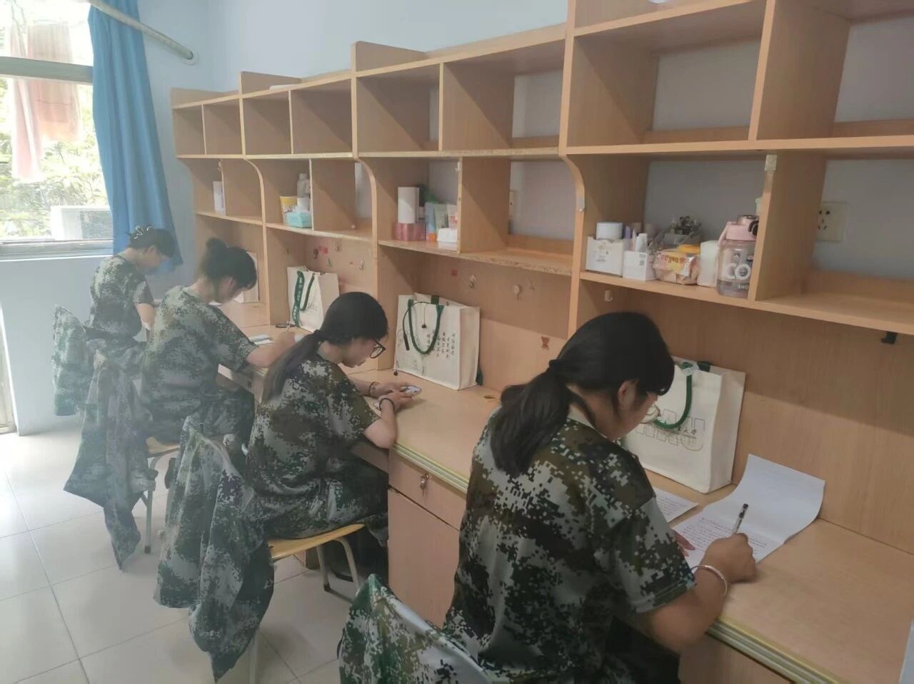 退伍学生李渊、张慧敏、袁亚鑫多次走进新生宿舍,开展了一系列暖心又实用的内务整理教学。