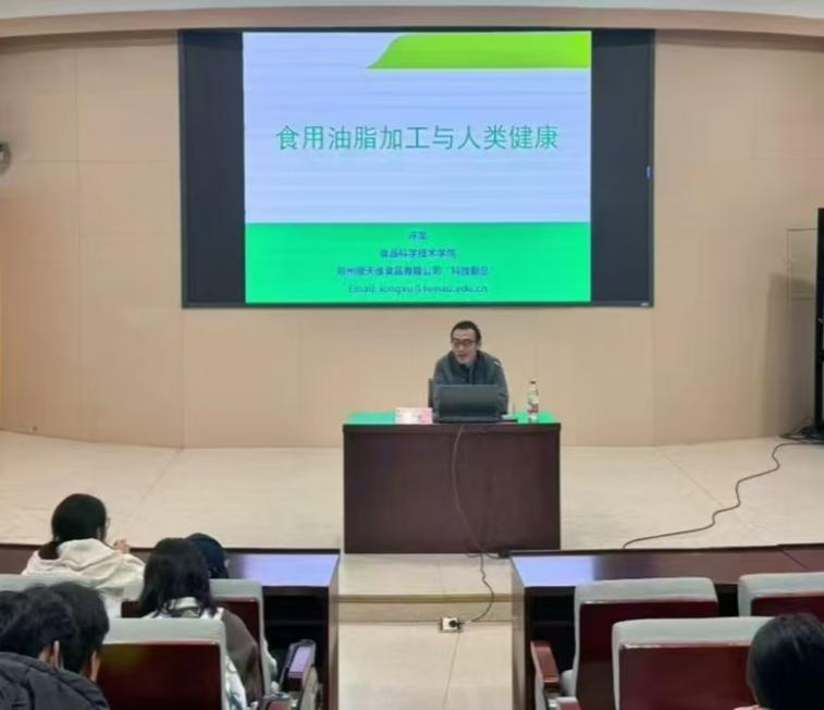 许龙围绕食用油脂的发展历程、产业概况、加工工艺及健康影响等核心内容展开讲解。从我国食用油脂“从无到有、从够吃到吃好”的发展演进,到全球植物油、动物油脂的产量变化与市场规模趋势,系统呈现了行业发展脉络;通过解析大豆、花生等主流油料的加工流程,详细介绍了压榨、浸出、精炼等核心工艺,对比了大宗油脂规模化生产与小型油坊传统加工的特点;结合当前我国心脑血管疾病高发的现状,阐明了油脂摄入与健康的密切关联,强调了科学加工与合理膳食的重要性。同时,还分享了油脂加工领域的新技术方向,如酶法提取、生物精炼及分子改造等,让学生了解行业前沿动态。