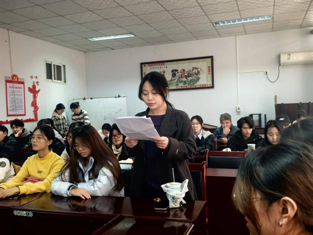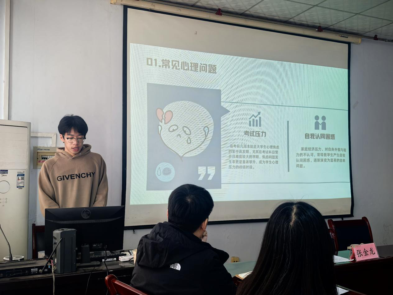会议伊始,心理委员代表依次上台发言。李佳慧结合自身工作实践,分享了关注同学情绪状态、及时开展心理安抚的经验,强调了日常观察与主动沟通的重要性。随后,陈宏洋根据同学们常见的心理问题,提出一系列切实可行的解决方法,为心理委员开展班级服务提供了有益参考。