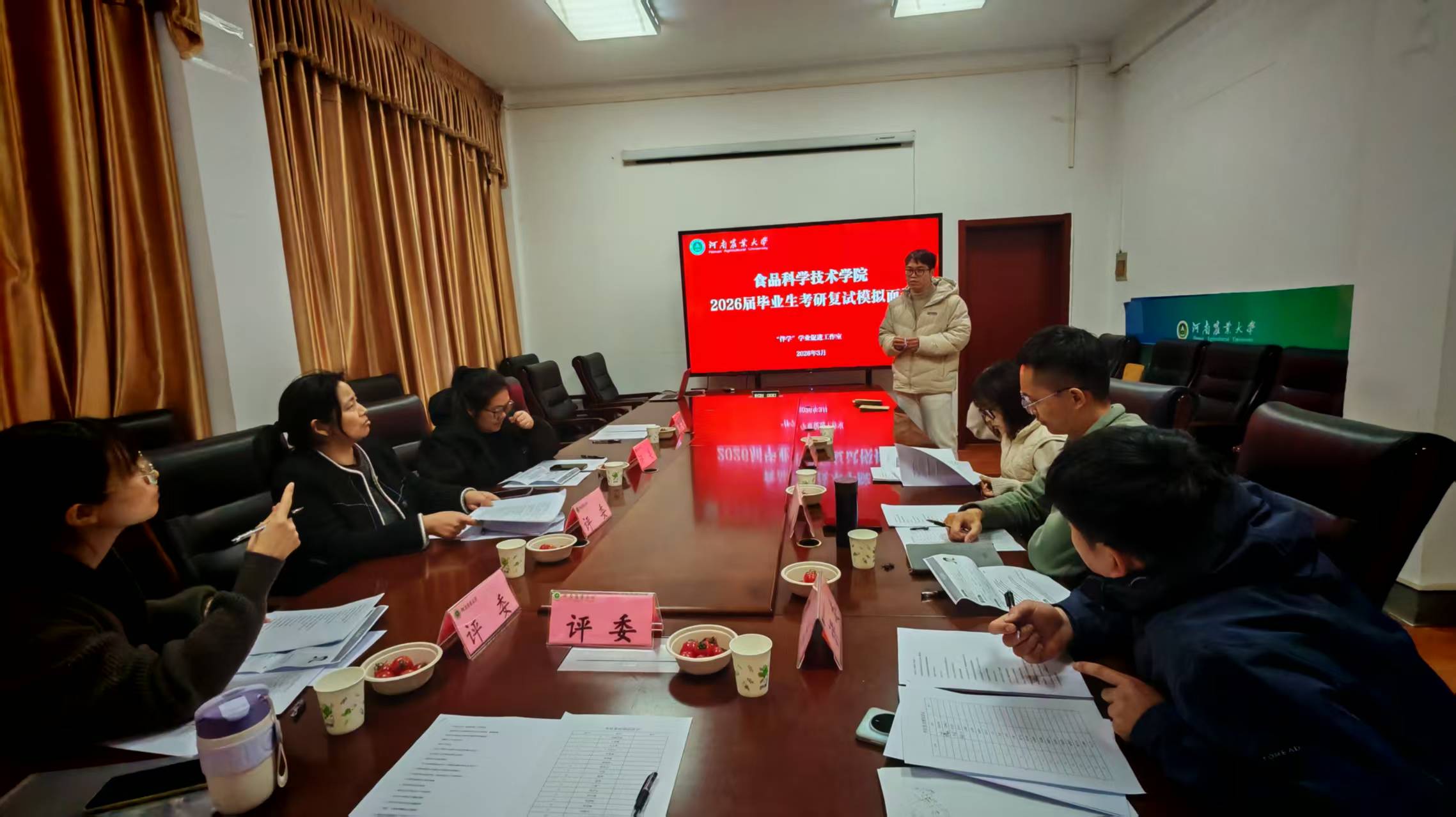 学院统筹资源,协调教室作为考研复试专用备考空间,为学生提供安静、独立的学习环境,专属的“备考驿站”让学子在整洁有序的氛围中静心梳理知识、从容准备复试。在做好硬件保障的基础上,学院充分发挥校友资源优势,邀请中国农业大学、南京农业大学等往届优秀毕业生通过线上平台开展经验分享,围绕复试流程、专业问答、英语口语、调剂技巧等内容细致讲解、在线答疑,用“过来人”的经验为学弟学妹指点迷津。同时,为帮助考生提前适应复试节奏、提升应试能力,学院还组织专业教师开展考研复试模拟面试,从专业知识储备、逻辑思维表达、仪容仪表仪态等方面进行全方位指导,针对每位学生的表现提出个性化改进建议,帮助学子查漏补缺、增强信心。