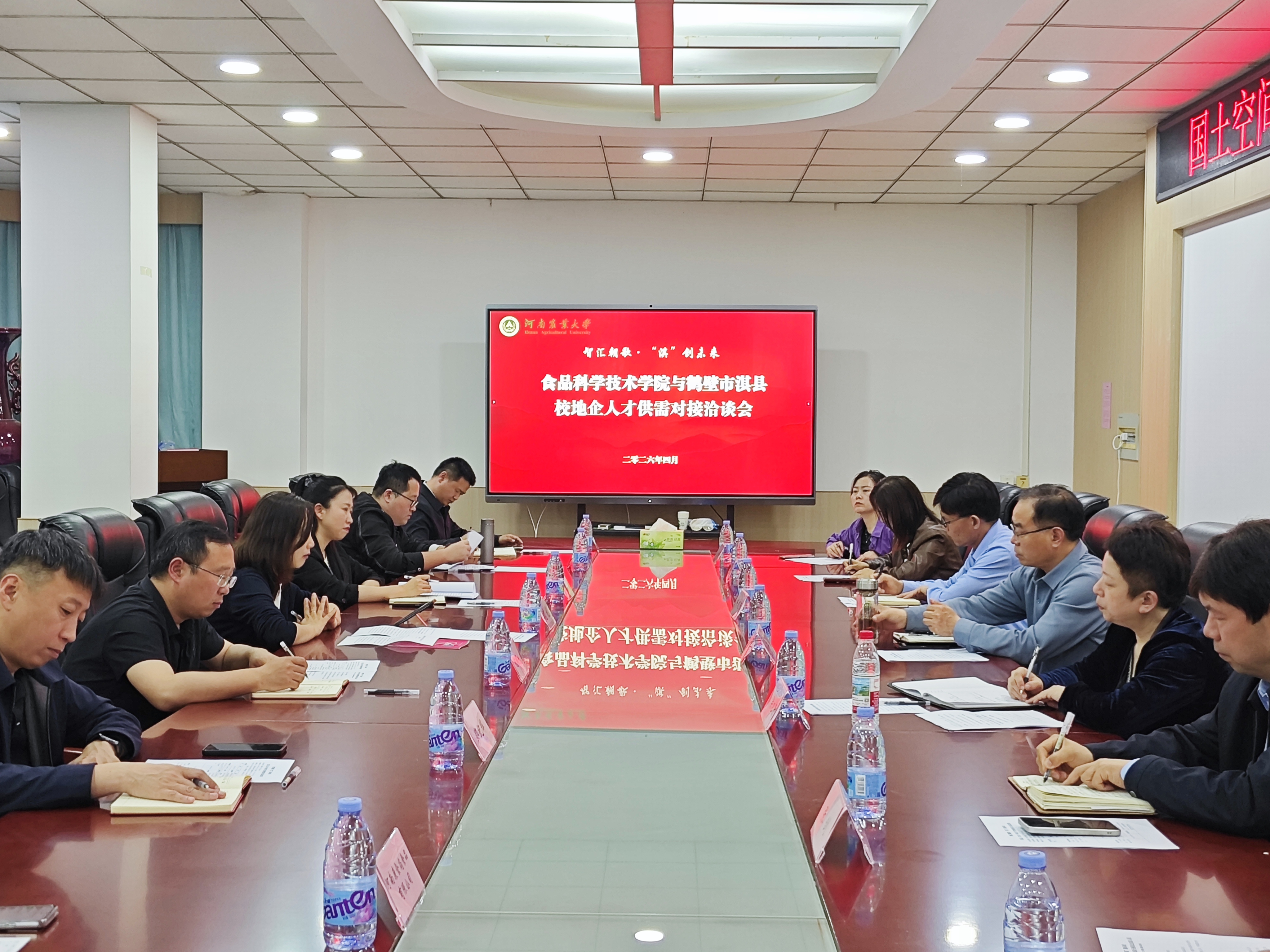 招聘会后,双方举行了座谈交流会。吴旭静对淇县一行的到来表示欢迎,并希望双方在实习就业、科研攻关等方面开展务实合作。黄现青从学院发展概况、学科建设、人才培养特色及毕业生情况等方面作了详细介绍,希望与淇县进一步深化合作。与会代表围绕食品行业人才需求新趋势、产学研合作路径等议题展开深入讨论,并就共建实习基地、联合培养人才等达成初步共识。