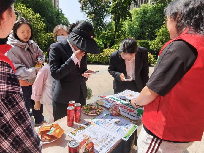 活动现场,实践团队通过悬挂主题宣传条幅、摆放科普展板、发放知识宣传彩页、播放食品安全科普视频,组织居民扫码学习食品安全控制知识等多元化形式,以亲民务实的态度,为社区居民带来了一场贴近生活的食品安全科普宣传。本次科普宣传依据《中华人民共和国食品安全法》,针对社区居民特点,围绕中国居民膳食宝塔解读、特殊人群膳食安全注意事项、网络食品安全、转基因食品安全性等居民日常关注的热点内容,团队用通俗易懂的语言,为居民解读食品安全专业知识,传递科学健康的膳食理念。